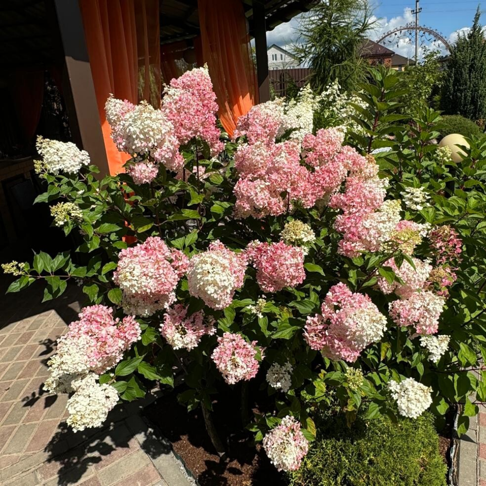 Крупный кустарник 2 м с раскидистой красивой кроной и ярко-розовым цветением! Первоначально соцветия распускаются кремово-белыми, но впоследствии нижняя их часть розовеет, а порой и вовсе становится малинового цвета!