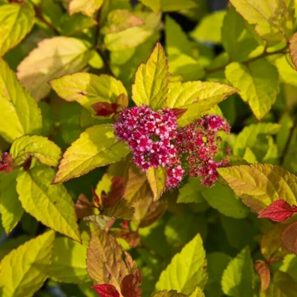 Куст при желании можно формировать, но и без этого у него раскидистая, плотно загущенная крона, в период цветения усыпанная многочисленными розовыми соцветиями в форме щитка. Крона в диаметре может достигать 1,2 м.