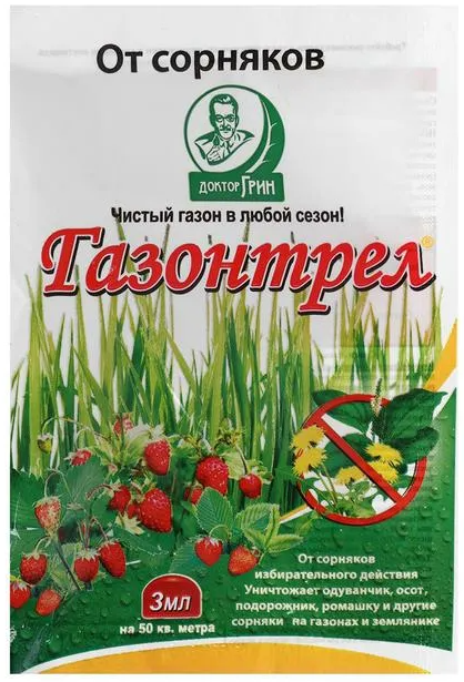 Газонтрел – селективный гербицид для уничтожения всех видов осотов, ромашки и горцев на землянике и газонах. Препарат обладает продолжительным защитным действием, показывает высокую эффективность против сорняков семейства сложноцветных, подавляет виды однолетних и многолетних сорняков. Быстро проникает в листья сорных растений и передвигается в точку роста, корни и корневища, прекращая их рост.